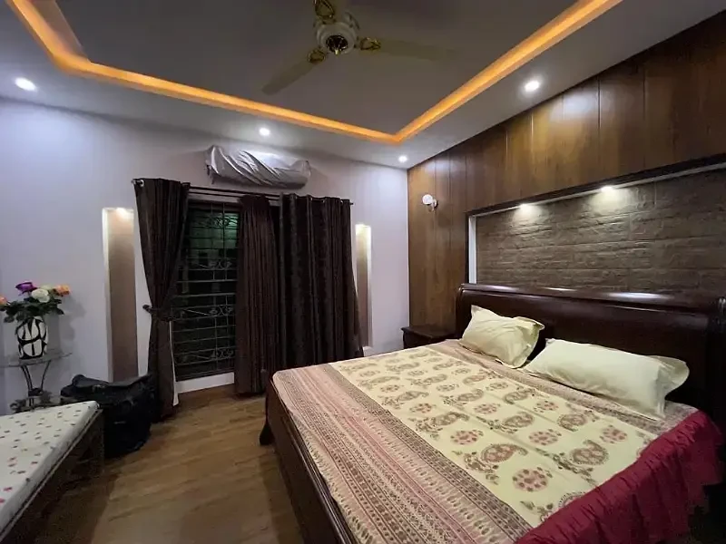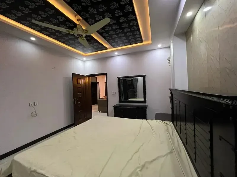 This VIP furnished upper portion in Bahria Town Lahore offers a comfortable and elegant living experience. The property features modern interiors, a spacious drawing and dining area, a TV lounge, a well-designed kitchen, wooden cupboards, and attached bathrooms, providing both luxury and convenience for residents.